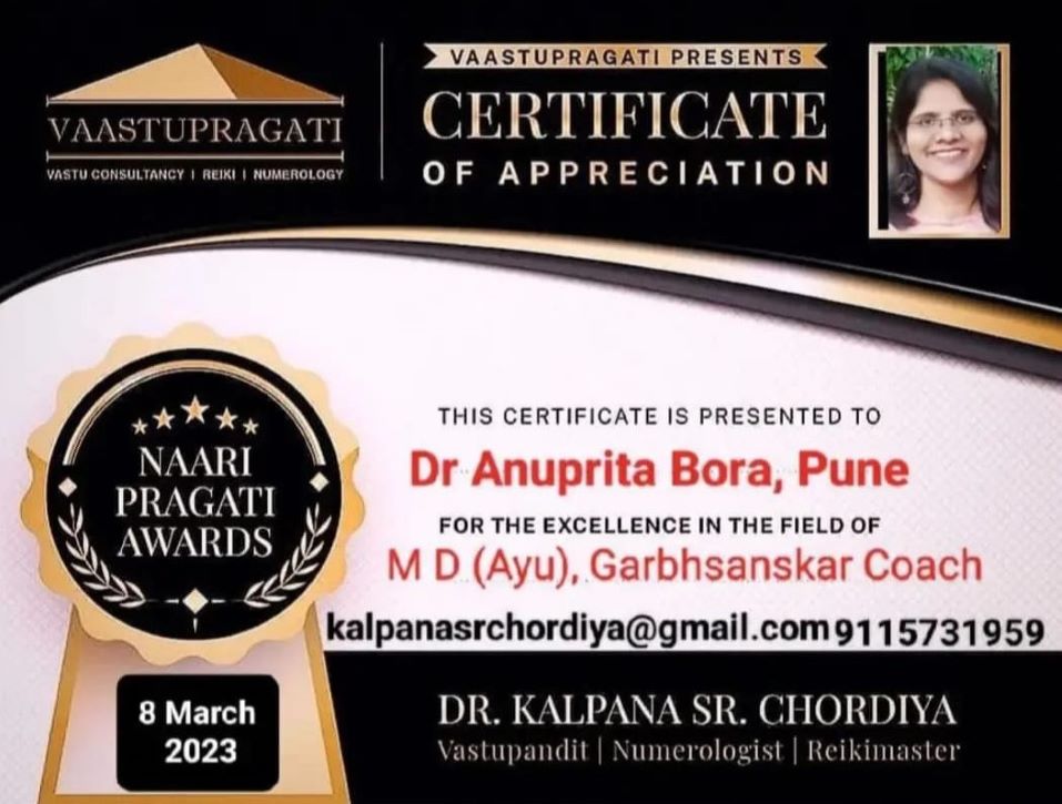 With over 14 years of dedicated experience, Dr. Anuprita Tushar Bora, M.D. in Ayurveda, is a trusted name in holistic healing. Specializing as an Infertility Consultant, Panchkarma Specialist, and Garbhsanskar Coach, she has helped countless individuals reclaim their health through authentic Ayurvedic treatments. Her compassionate care, deep-rooted knowledge, and intuitive counselling make her not just a doctor but a true healer who walks with her patients on their journey to lasting wellness.
