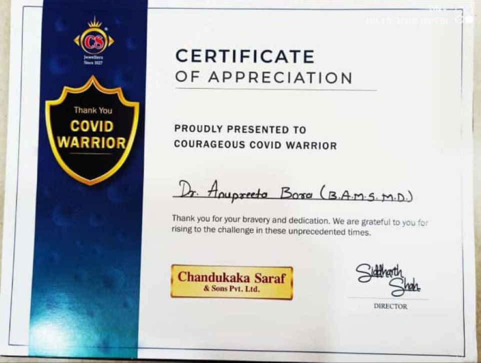 COVID-19 Warrior Award Winner: Treated over 500+ COVID patients successfully using Ayurvedic remedies and immunity boosters, earning the prestigious COVID Warrior Award.